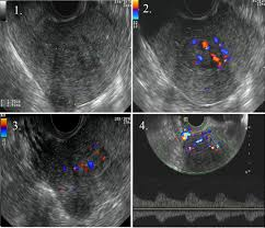 DiagnosticDiagnosticul se poate stabili cu ocazia examinării ginecologice când se poate palpa un uter mărit de volum cu contur neted, regulat în vazul nodulilor intracavitari sau prin examinări imagistice, cea mai rapid accesibilă fiind ecografia.